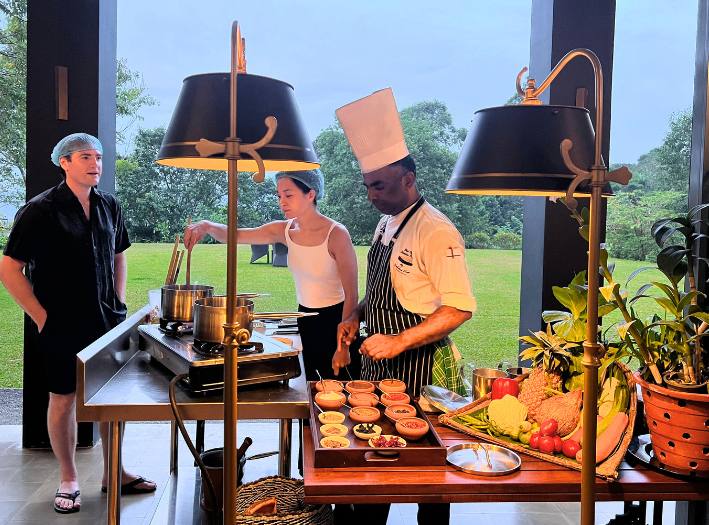 An immersive culinary experience showcasing the vibrant flavors of Sri Lanka. Our head chef will demonstrate the preparation of a traditional Sri Lankan rice and curry feast, highlighting the island’s iconic spices like cinnamon, cardamom, cloves, curry leaves, and roasted chili. Enjoy the fruits of your labour after the demo.