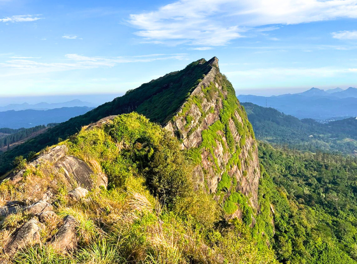 Embark on an invigorating mountain hike of 5km. Following a 50 min drive by our jeep, be guided by our Naturalist, you will hike through tea plantations, marshy lands and forest to reach the peak. Enjoy views of Piduruthalagala, Peak wilderness, Peacock Hill , Bible Rock, Alagalla Rock, Brandy Gala, Hunnasgiriya, Knuckles Ranges, Leeping Warrior Mountain and Kabaragala. Provisions include water, coffee, sandwiches, and cookies. We provide leech socks, raincoats and binoculars.